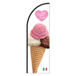 Schepijs beachflag bestemd voor alle ijsverkopers in heel Nederland en België! Met deze opvallende vlaggen weet je zeker dat niemand meer ongezien je kraam of winkel voorbij loopt. Kijk ook bij de andere schepijs en softijs ontwerpen die beter bij jouw verkooppunt past.
